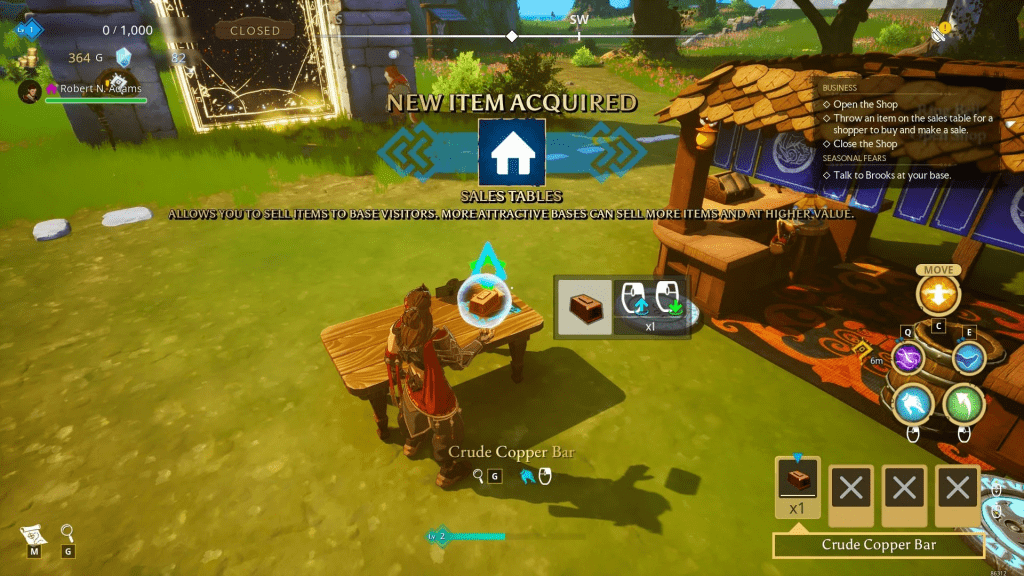 Artık dükkan açma zamanı geldi. Bir Blin Tüccar Loncası, bir Kasa ve 1 Satış Masası inşa edin. Kasa ve Satış Masası, Bifrost kapınıza oldukça yakın olmalıdır.