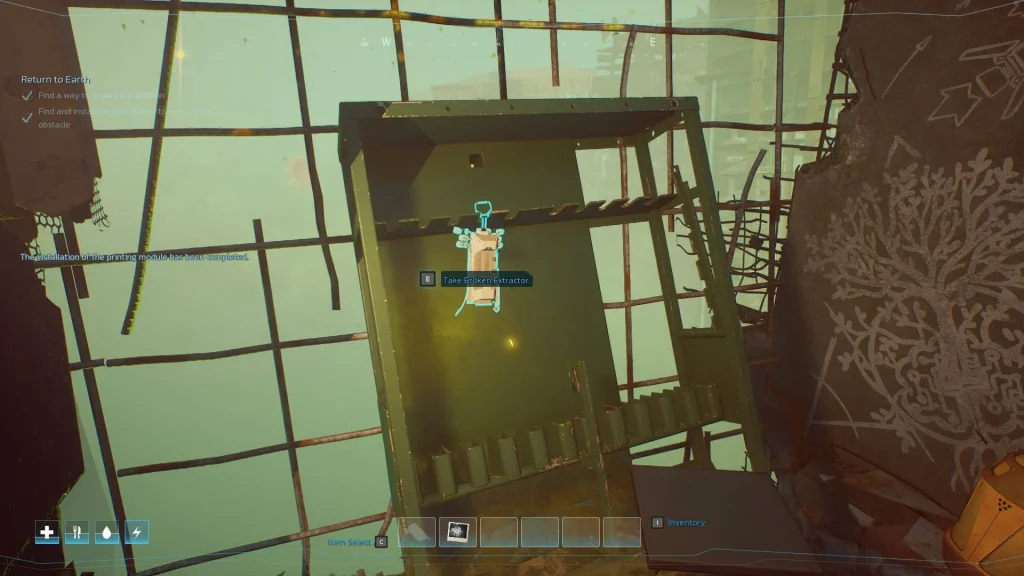 Duvardaki delikten bakarak havada hareket eden kalıntıları ve diğer nesneleri Çıkarıcınızla çıkarabilirsiniz. Bu işlem, Çıkarıcınızın bataryasını harcayacaktır, ancak sağ tıklama veya R tuşunu basılı tutarak şarj edebilirsiniz.