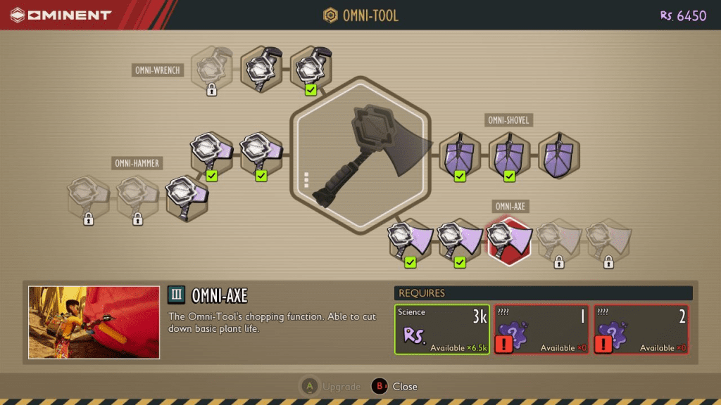 Omni-Tool’u satın aldığınızda, ilk olarak temel seviye 1 Omni-Axe fonksiyonuyla tanışırsınız. Bu, otları ve yabani bitki saplarını kesme imkanı sunar, ancak dört ek yükseltme ile daha fazla malzeme elde edebilirsiniz.