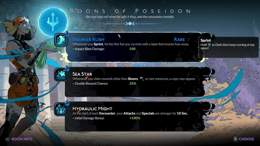 Burada, gücünüzün esas kaynağını nimetler oluşturmaktadır; bunlar, bir koşu esnasında yeteneklerinizi değiştiren tanrılardan gelen hediyelerdir. Büyülerle kıyaslandığında, nimetler genellikle standart roguelite yükseltmelerinden daha karmaşık bir yapıya sahiptir. Hasar artışı ya da güç gibi istatistiksel artışlar elde edebilme imkanı bulacaksınız, ancak çoğunlukla nimetler, yeteneklerinizin işleyiş biçiminde değişiklik yapar.