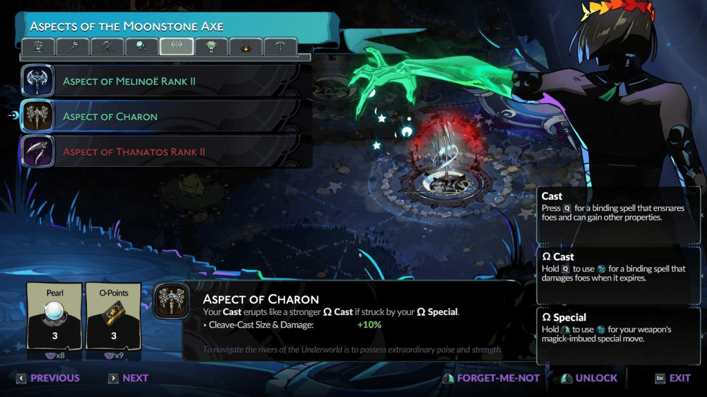 Bu oyun tarzı biraz sıradışı gibi görünebilir, ama ben bunu seviyorum. Melinoe, özel hamlesi ile ileri atılarak kafataslarını yakalıyor, bu nedenle Gümüş Kafatası ona çok fazla hareket kabiliyeti katıyor. Hephaestus’un saldırılarını ve özel yeteneklerini değiştirmek için yetenekleri yakalayın ve patronları eritin!