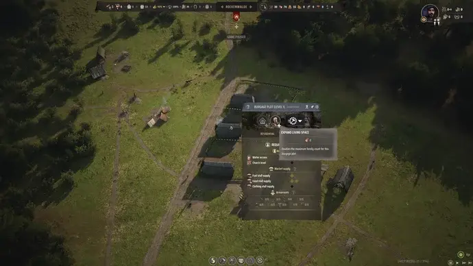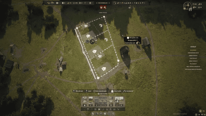 Uzun zamandır aileleriniz başlangıç çadırlarında kalıyordu ve ekranınızın üst kısmındaki ok işaretinin yanında Onay Puanınızın azalmaya başladığını görebilirsiniz. Bunun çözümü, Manor Lords’ta ailelerinizin barındığı Burgage Plots’u inşa etmeye başlamaktır.