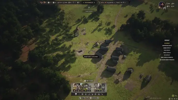 Oyun duraklama modundayken, basit bir yol ağına başlamanızı öneririm. Manor Lords’daki yollar ücretsizdir ve anında inşa edilmektedir, bu nedenle oyunun başlangıç aşamasında duraklatılmışken bu yolları inşa etmek her zaman faydalıdır.