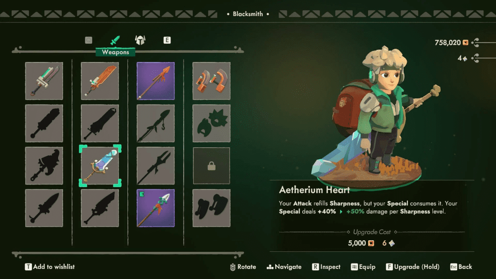 Aeolia zindanının Zephyr Fields kısmındaki patronu yendikten sonra, kasabada Julien ile görüştüğünüzde Aetherium Heart adı verilen büyük kılıcı elde edeceksiniz. Bu kılıcı yapmak için, Zephyr Fields’ın sonunda Senda’yı yenerek kazanacağınız Kralın Sol Maskesi malzemesine ihtiyacınız bulunuyor. Ayrıca 2.000 Altın temin etmeniz gerekecek.