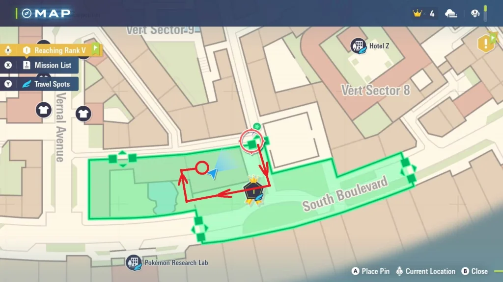 Göreve başladığınız yerden Güney yönüne, Vahşi Bölge’ye ve sonrasında Batı’ya doğru hareket edin. Küçük renkli Mareep grubunun bulunduğu kayaları ortadan kaldırın ve merdivenden yukarı çıkın. Merdivenin tepe noktasına ulaştığınızda, bir kez daha sağa doğru dönün ve yapının üst katına tırmanın. Zirveye vardığınızda, Parlak Mareep’in bulunduğuna dair kısa bir ara sahne ile karşılaşacak ve göreviniz tamamlanmış olacak.