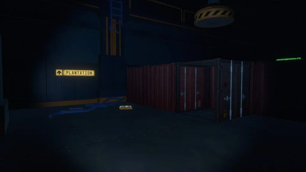 Konteynerlerin bulunduğu önceki odadan Plantation’a çıkan bir merdiven de mevcut. Ne yazık ki o merdiveni tam olarak kullanamıyorsunuz. Bu durumu düzeltmek üzerindeyiz.
