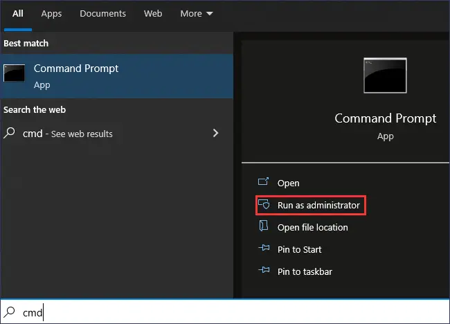 Adım 1. Arama çubuğuna cmd yazın ve “Yönetici olarak çalıştır” seçeneğine tıklayın.